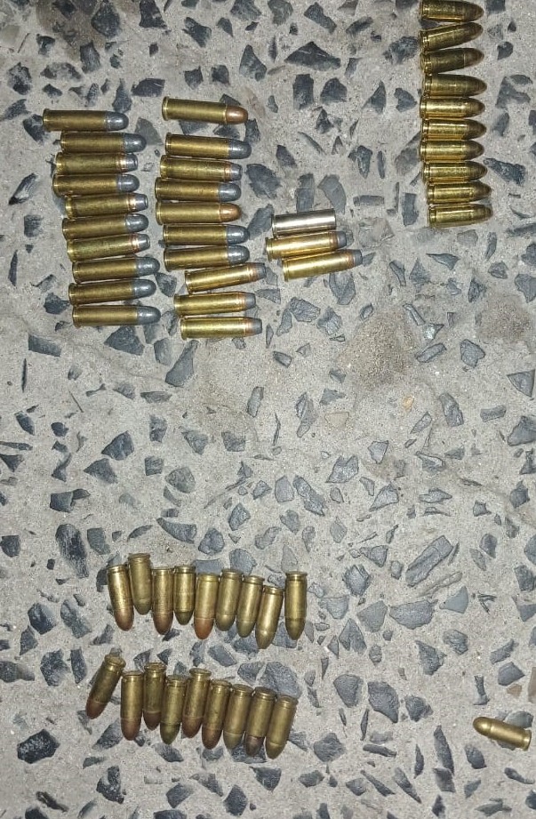 Hy het na bewering iets op die grond gegooi en by ‘n erf in Juniper-straat ingehardloop. Die polisie het hom agterna gesit en in die proses ‘n .38 Special-rewolwer, 27 rondtes .38 Special-ammunisie en 28 rondtes 9mm-ammunisie opgetel. Hy is in hegtenis geneem vir die besit van ‘n ongelisensieerde vuurwapen en ammunisie.